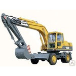 модель: Volvo EW205D. Объем ковша, куб. м: 0,86. Максимальная глубина копания, м: 5,565. Габариты, мм: длина - 9 355, ширина - 2 500, высота - 3 990.